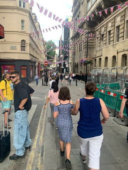 We then walked among the crowds to meet up with Pauline & Dave at the London Coliseum in London's famous West End theatre district for a production of "My Fair Lady". This was our thank-you to them for hosting us so excellently. This revival of the show in London was the first in over 20 years, and was to feature the diversity-infused casting of a black actress in the lead role of Eliza Doolittle. (Interestingly, however, that actress must have been ill or something, as a white understudy performed instead. But Eliza's father Alfie was still a black actor, which didn't make sense from a genetic perspective. There is always some suspense of disbelief required in modern theatre productions, I find.) Having recently watched the 1964 movie version of the play, there was also a surprise ending in this version. Instead of coming back to stay with him and live with his pompous and gaslighting ways, Eliza seems to come back merely to express her care and gratitude for Henry Higgins, while at the same time acknowledging she cannot stay with him any longer. She leaves to make her own way in the world as a lady. The production was excellent, and we were all humming classic tunes like "I Could Have Danced All Night", "With a Little Bit of Luck", "Wouldn't it be Loverly", and "On the Street Where You Live", all the Tube ride home.