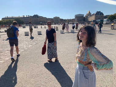 Our major outing today was to the Chateau Versailles, the main palace of the last kings of France - Louis XIV through Louis XVI. It takes just over an hour to get there, via transit from central Paris. We arrived a bit earlier than our entry time, so we picnicked our brunch leftovers under the shade of some nearby trees.