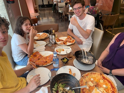 Lunch in central Granada at an Italian restaurant (‘Il Gondoliere’) for pizza and big salads. I got our Wanderlog app to identify “best cheap eats in Granada”, and this was one of the places that came up that was open for lunch. Used Google Translate to communicate. Ordered too much food, but gave us leftovers. Kids were pretty excited about the bathroom fixtures there.