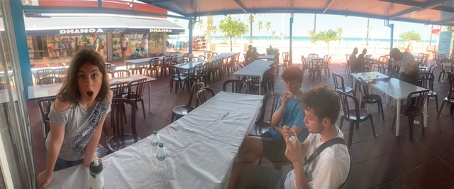 Dinner at another beachside restaurant (La Fontana) serving Spanish fare and American, French, Italian options. The Spanish options like paella and salad were the best; Faith’s noodles were gross.