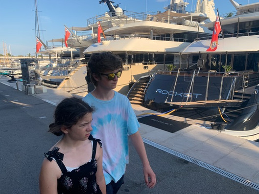 Cannes, of course, is the site of arguably the most prestigious film festival on the planet. It takes place in the spring, so there wasn’t any festival activity today we could take in. But it was still neat, especially for our budding filmmaker Thane, to visit the red carpet and walk of fame. We had a harder time picking a suitable cafe for brunch, however, especially since my empty stomach and the heat were impairing my ability to decide. The meal ultimately helped my disposition. The highlight of the meal was the extra-fluffy pancakes, ordered by Luke & Faith, that took the kitchen over 30 minutes to prepare.